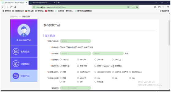 4、后台审核通过后,可以在“会员中心”发布“贷款产品”。